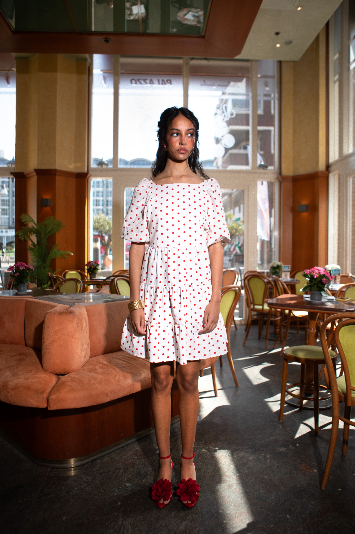 This dress is a Caliente original, a longtime favorite we've worn for two seasons, and now it's finally available to you. With its crisp white fabric and playful dots, it’s designed to flatter: your tan will stand out even more, your legs will look longer, and your summer days will feel even dreamier. The breathable linen-cotton blend keeps sweat at bay and lets every breeze through, making it as practical as it is beautiful, just how we like it.