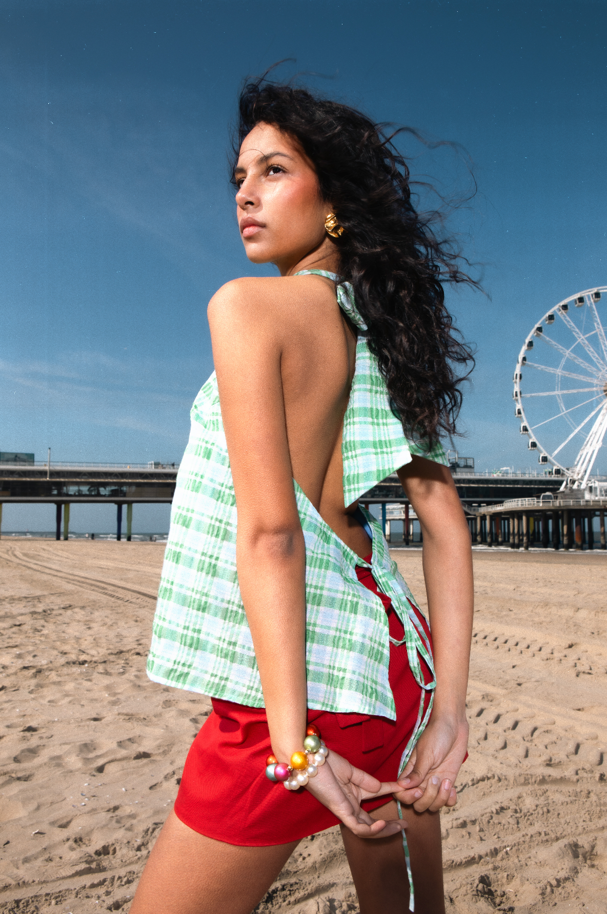 Do you know that song by Justin Timberlake? Well, we tried to translate the feeling that song gives us into a top. That moment you walk by your ex at a bar and look over your shoulder, knowing he’ll look, because you’re wearing the perfect backless top. Not only is it perfect for making your ex regret his choices, but it’s also ideal after a plate of pasta in Italy. It’s light, airy, and very adjustable thanks to the bows. We like it loose here at Caliente, and that’s why we love this top.