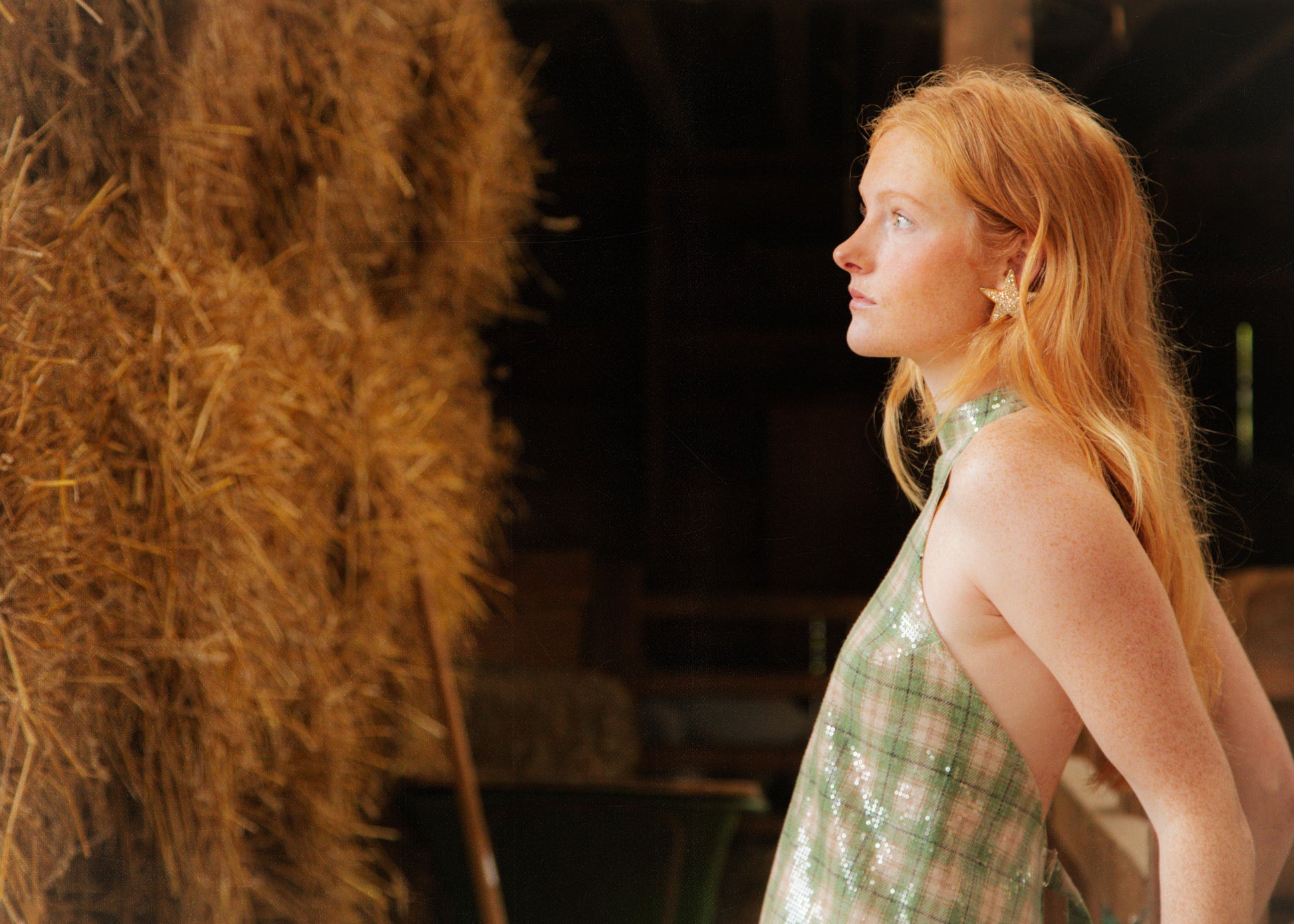 Bringing sexy back top green glitter tartan