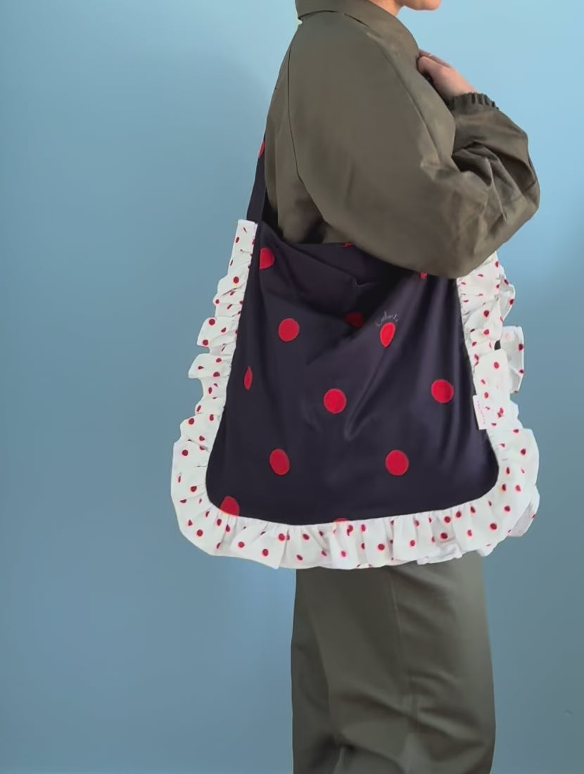 Inspired by the Spanish flamenco dresses I used to wear as a little girl, and made from leftover Caliente fabric, this bag is full of movement and color. It’s made to steal the show, even on an ordinary weekday.